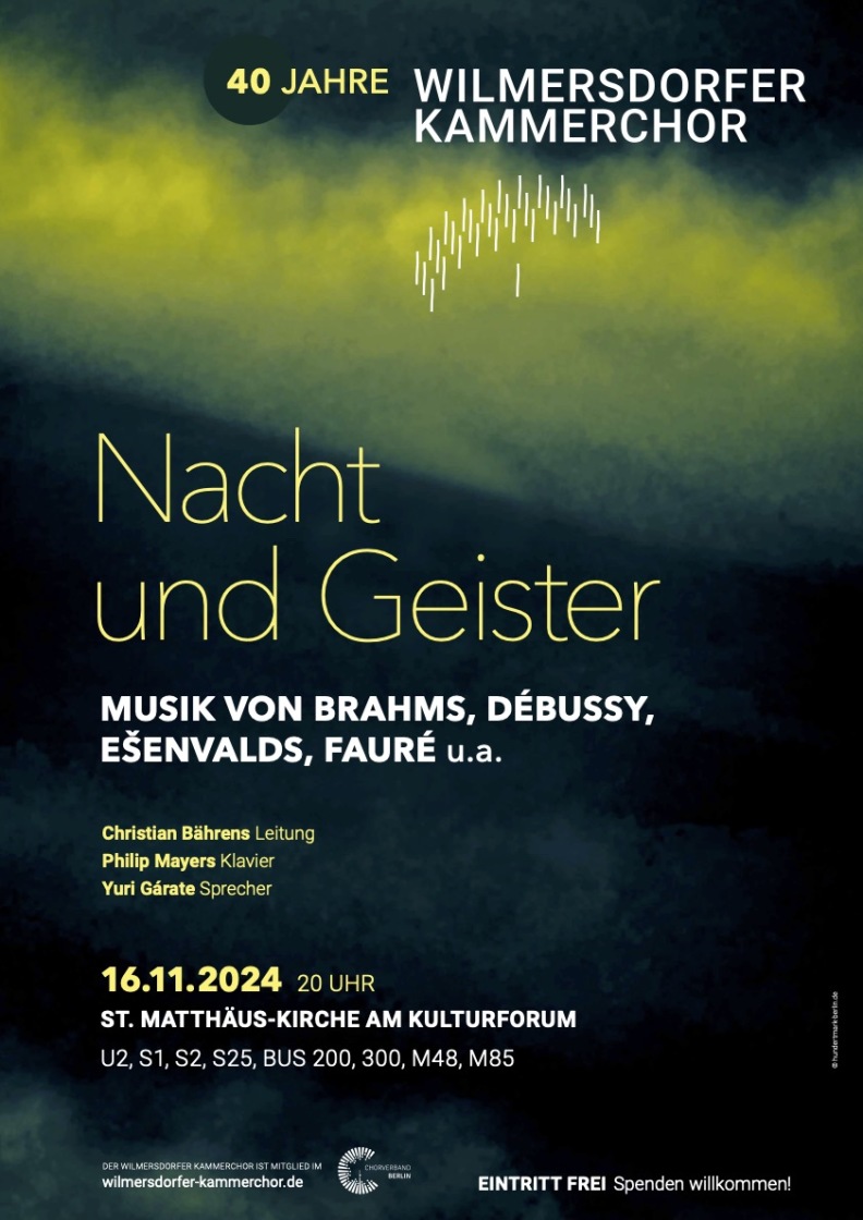 Inga Godolt, Sopran - Matthias Knop, Tenor - Philip Mayers, Klavier - Yuri Garate, Sprecher WILMERSDORFER KAMMERCHOR - Leitung Christian Bährens